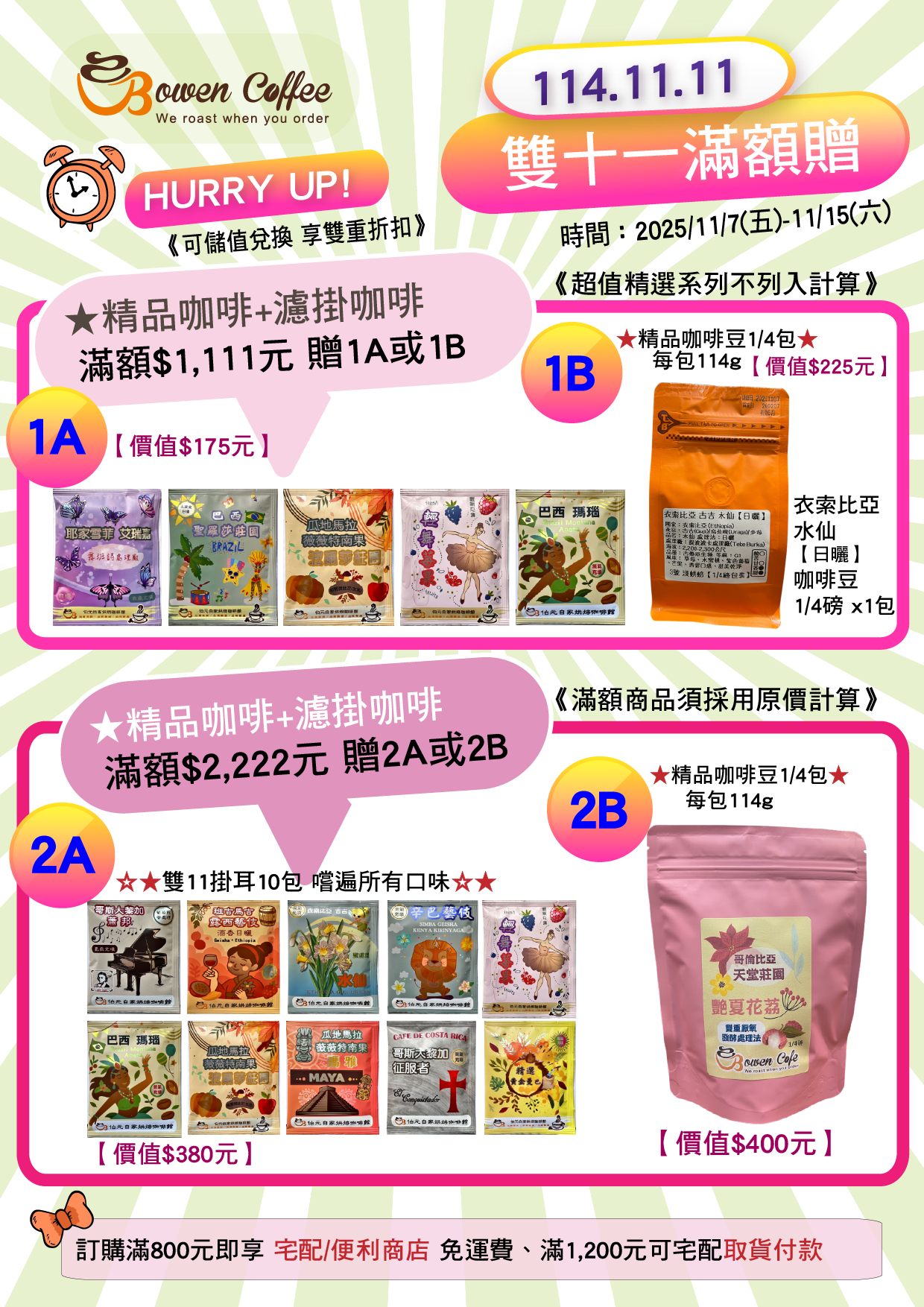 請備註要掛耳包五件組還是要1/4磅水仙日曬豆組