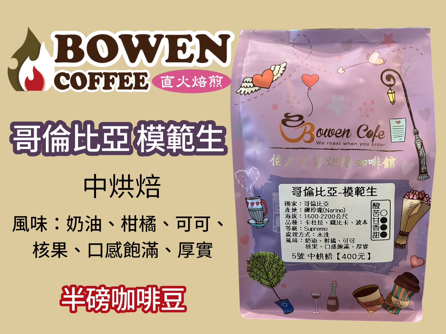 伯元咖啡每週二、三、四、五皆會烘焙,下單後若有現貨即會當天出貨,無現貨情況通常3天之內會寄出訂單。商品描述中顯示的《紅利點數》是回饋的金額一點等於一元、可於下一筆訂單中折抵使用國家:哥倫比亞 Colo.....