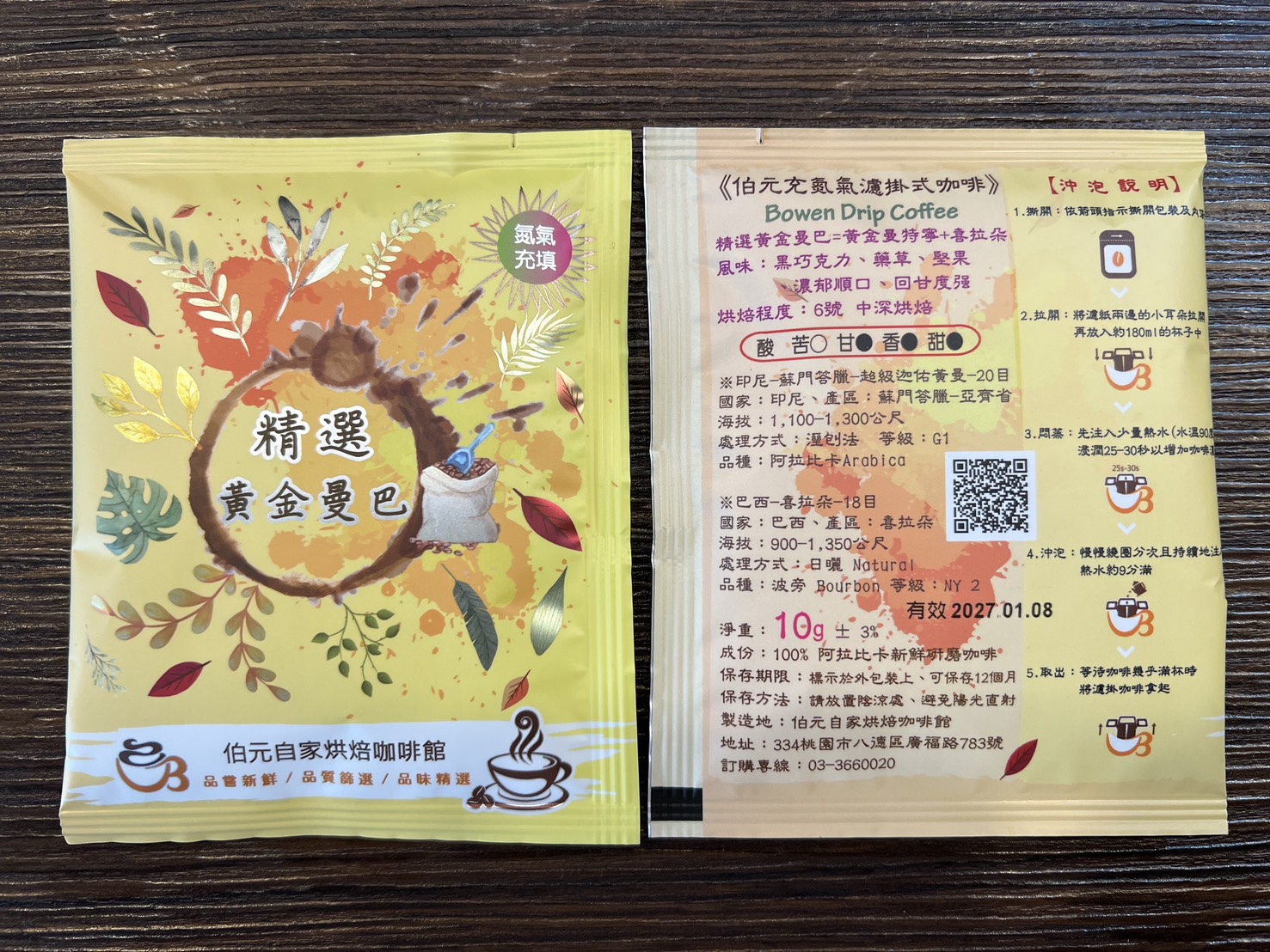 本批次製作時間:2026/01/08 有效時間:2027/01/08充氮氣濾掛有效延緩氧化的速度!包包新鮮 【充氮氣濾掛式咖啡】每包咖啡粉,可以沖泡120-150c.c.咖啡國家:.....