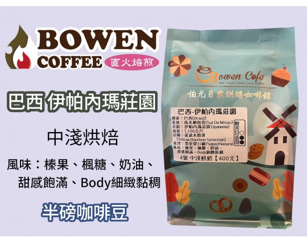 【伯元咖啡】中淺烘焙-巴西-南米納斯省-伊帕內瑪莊園【水洗】